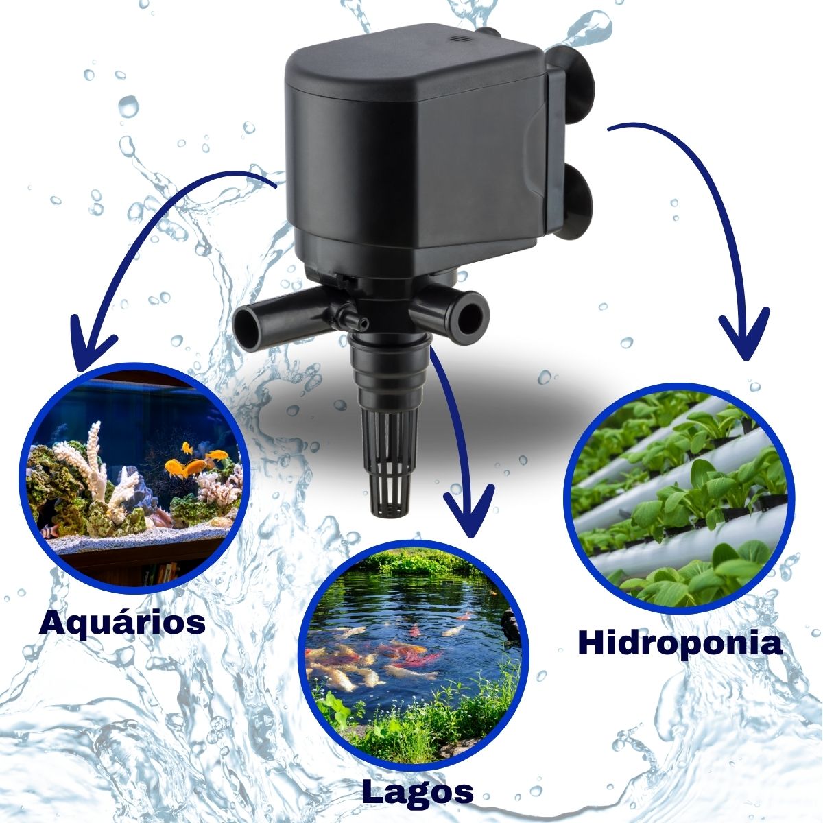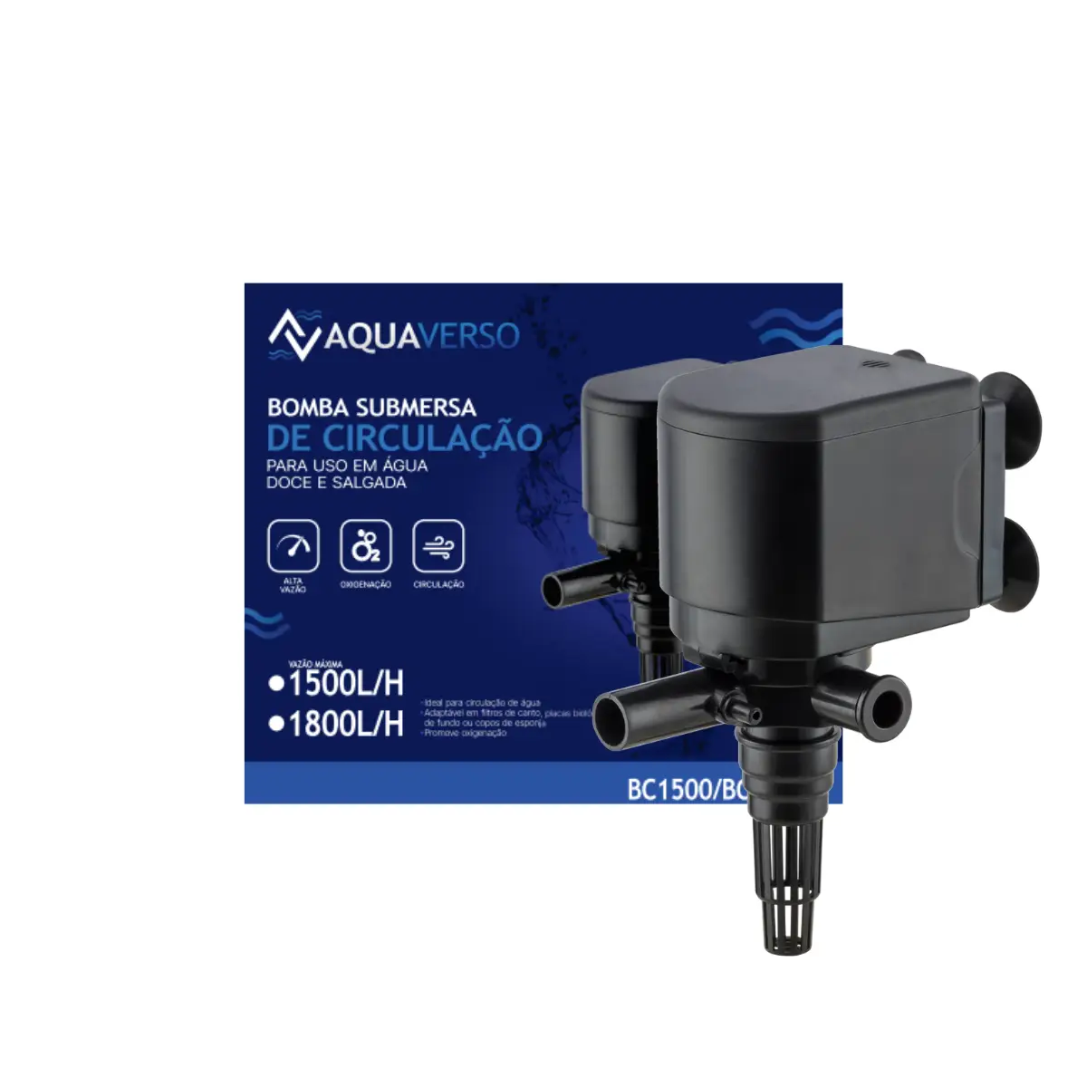 Bomba submersa compacta e potente para aquários, fontes e chafarizes. Ideal para circulação de água, filtragem e oxigenação, com alta vazão e baixo consumo de energia.