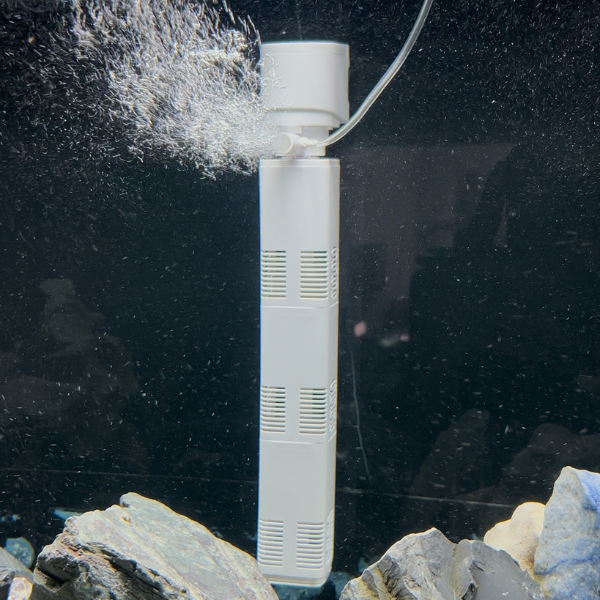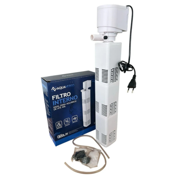 Filtro interno e bomba de circulação submersível. Ideal para aquários de pequeno a médio porte, oferece alta vazão e oxigenação eficiente para manter a água saudável e cristalina.